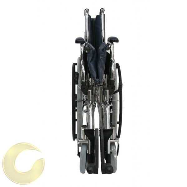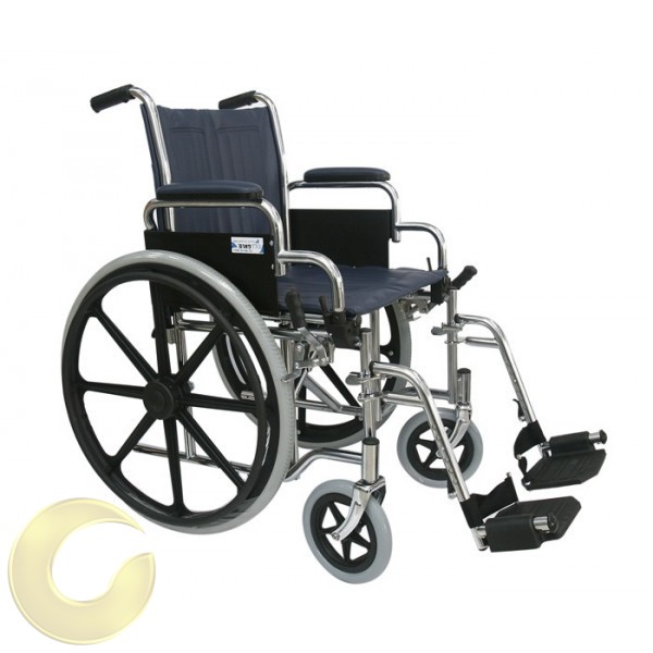כסא גלגלים סיעודי חזק, מתקפל בקלות, בעל רגליות מתפרקות.