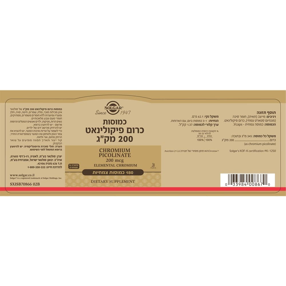 כרום פיקולינט 200 מק"ג של סולגאר מבוסס על פטנט רשום CHROMAX® שהינו בעל ספיגה אופטימלית וזמינות גבוהה בגוף. יעילות הפטנט הוכחה במחקרים קליניים.