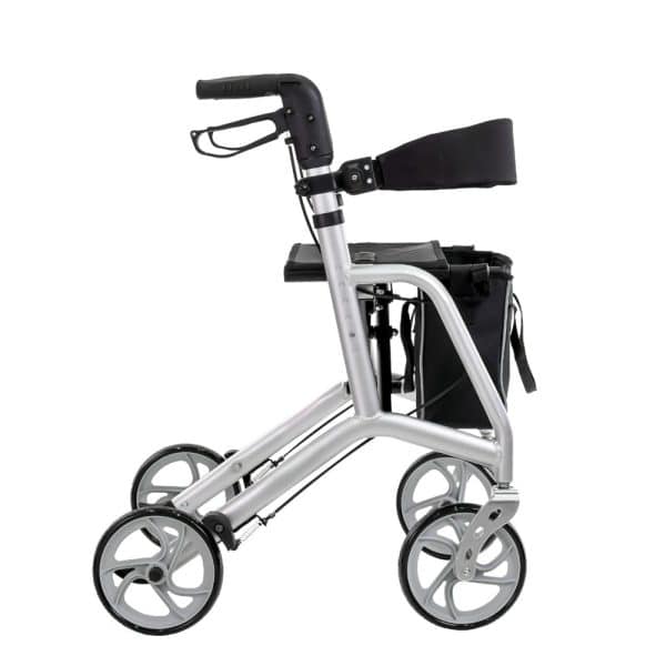 רולטור 4 גלגלים קומפקטי וקל לשימוש, עם עיצוב איכותי ונוח במיוחד. כולל משענת גב, ידיות מתכווננות לגובה הרצוי, ומנגנון בלמים “לחיצה קלה” להפעלה נוחה ובטוחה. מגיע עם סלסלת קניות נשלפת בעלת ידיות נשיאה, תופסן למקל הליכה ומחזיק לבקבוק מים או כוס קפה. נוח לקיפול ביד אחת על ידי משיכת רצועת המושב כלפי מעלה, וקל מאוד להכניס לרכב.
