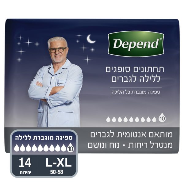תחתונים סופגים ללילה - דיפנד L לגבר בספיגה גבוהה 10 טיפות