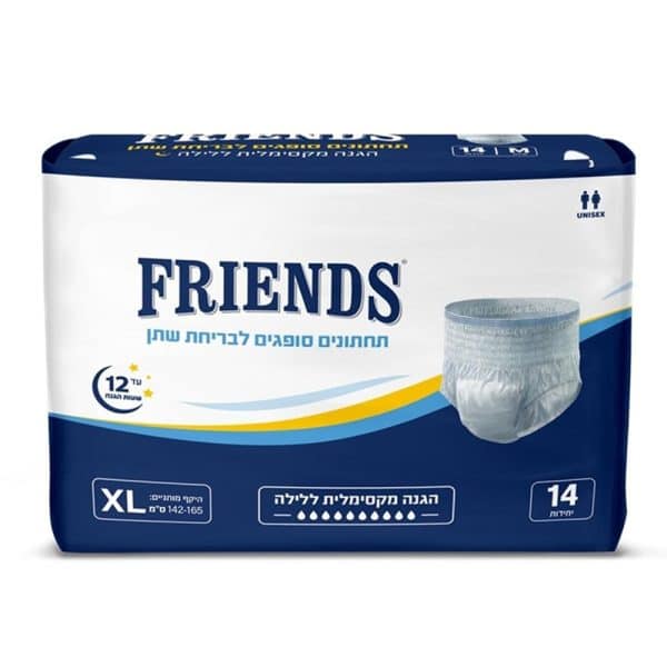 תחתונים סופגים ללילה פרינדס Friends. פתרון מעולה לגברים ונשים שסובלים מבריחת שתן קלה עד בינונית. לשימוש ביום ובלילה. דקים וגזרתיים ויחד עם זאת סופגים לנוחות יובש ובטחון. התחתון עשוי מחומר נושם ואלסטי ובכך שומר על העור יבש ומאוורר.