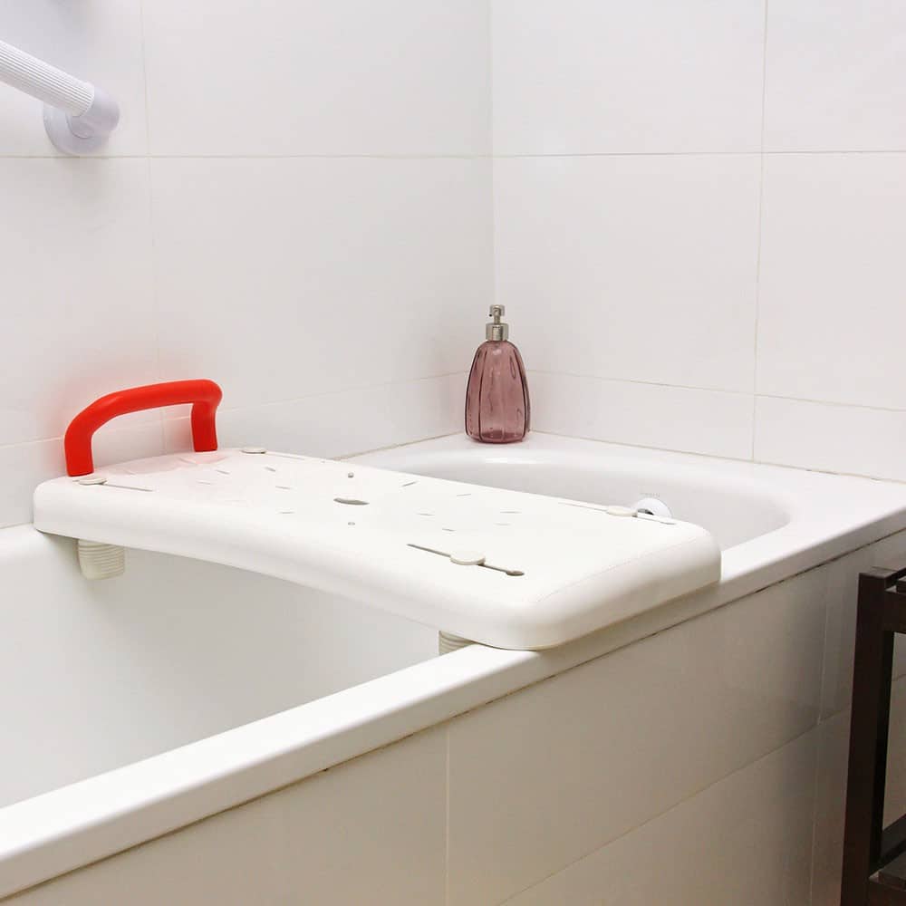 ספסל אמבטיה הופך את הרחצה לבטוחה יותר ומהווה פתרון לבעיית הכנסת כסא פנימה לאמבט בשל חוסר במקום.