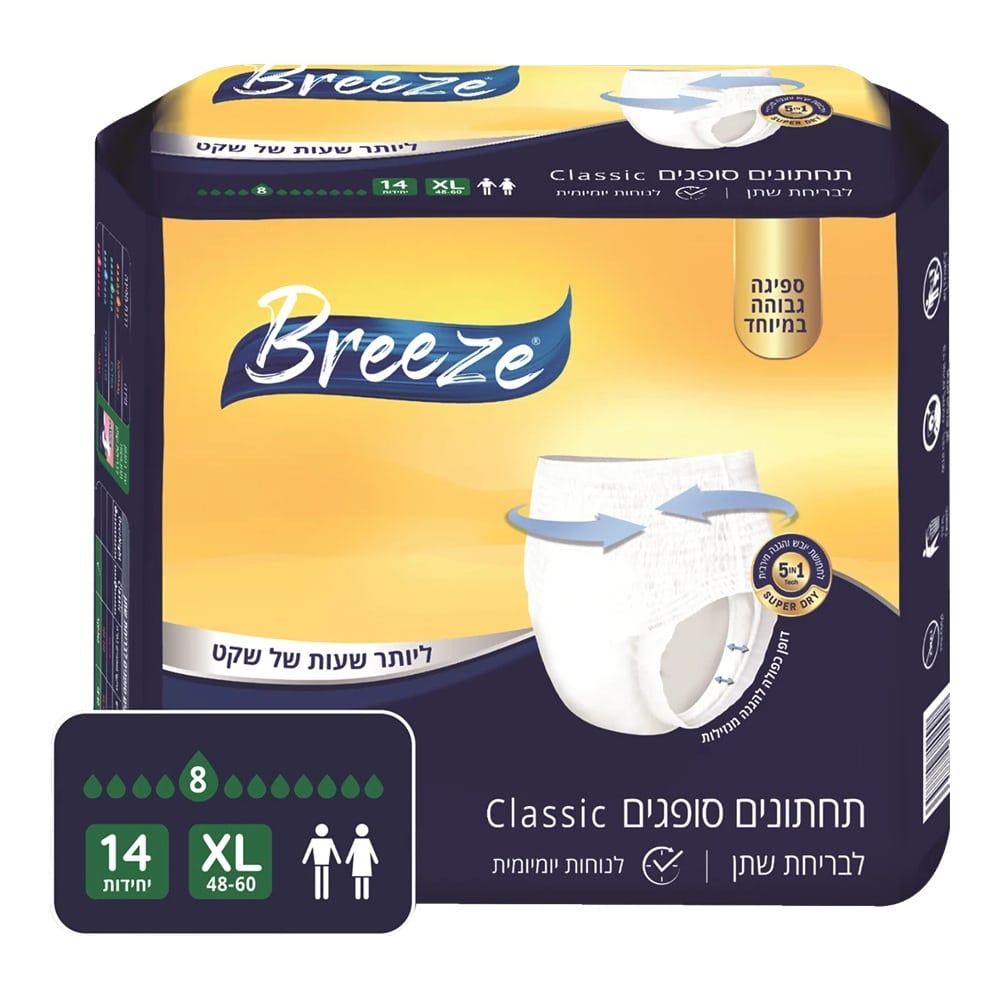תחתוני הספיגה Breeze Classic מיועדים לנשים ולגברים פעילים הסובלים מבריחת שתן בדרגה בינונית עקב אי שליטה בסוגרים.